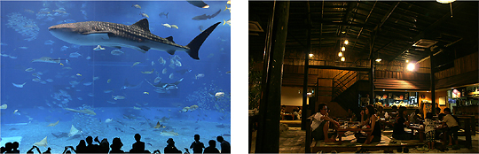 2日目は今回の旅行の1番の目的でもあるちゅらうみ水族館でジンベエ見学。もっと大きいかと思ったけど意外と顔がすごくかわいかったので思わず顔もほころびます。夕飯はホテルの近くの食堂で。雰囲気も良く料理も最高でした。