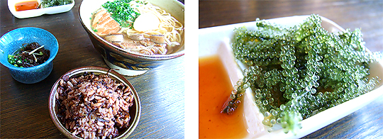 もともと沖縄料理は大好きなのですが、やはり沖縄の風土で食べるごはんは格別で、何を食べても美味しいし食べてて罪悪感のない気持ちよい(?)ご飯はさすが長寿日本一の沖縄食。憧れのグルクン唐揚や海ぶどうも食べられて大満足でした。