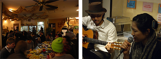 11/28は新宿御苑のパペラさんでのライブで、国内外の総勢13組ものアーティストが出演しました。イベントはオールナイトで、お客さんも100人以上ひっきりなしに入ってきていました。中でも外国のお客さんが非常に多かったのが印象的でした。僕達は30分ほど演奏した後、お店の自慢のカレーを食べて帰ってきたのですが、本場インドのシェフが作るカレーはやはり美味しかったです。