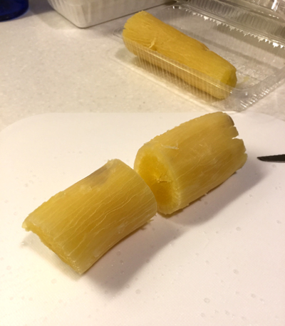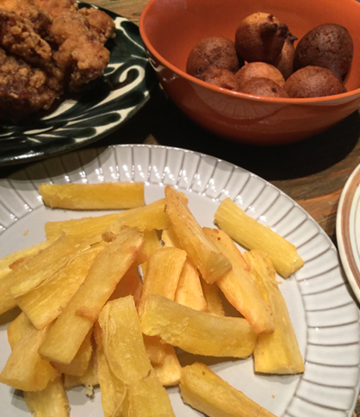 そしてタピオカはこのマンジョッカのデンプンから作られると以前この手帖に書きましたが(たぶん)、なっとく。見た目はさつまいもみたいだけど、熱を加えるとネットリを含んだホクホク感?とにかくブラジルで食べて美味しかったフライにしてみました。