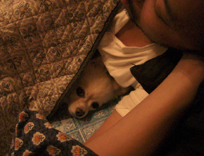 ■ 昼寝してたらうちの犬がくっついてきた(人間が残念な表情な為モザイク)
