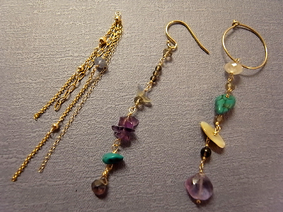 組み合わせ自由なアシンメトリータイプのピアスにしてみました。