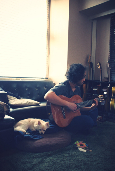 ギターを弾き始めると、不思議と相方の傍らへ行くおゆ。