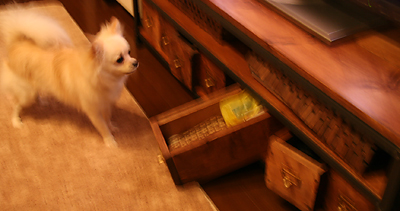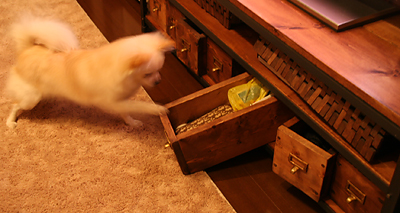 それは引き出しを開けてしまう事。 ![]() ■ 軽ーく引き出してから、 ある日、私がテレビ台の下の引き出しから物を出すのを見て 急に引き出し始めました。 今まで見てた筈なのに。。。日々おゆの脳は進化しているのでしょうか。 ![]() ■ 唸り、吠え出す まだその習慣に慣れていない頃は、おゆ以外誰もいないリビングで“ガラっ”と 鳴ると、一瞬、誰かいるんじゃないかという錯覚さえ起きました。 ![]() ■ すみません(と、思っているかはわからない) 何度叱られてもめげずに開ける。 開けては閉め開けては閉め開けては閉め開けては・・・・・・ と今日もいたちごっこは続くのでした。 |