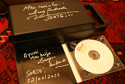 スペシャルコンサートに行ってきました。 ![]() ■ ほんとうに今日、会えるんだ 実際にはブラジルから来た訳ではないっぽい。。。 今はアメリカに住んでるとかいないとか。 ![]() ■ 場所は四谷区民ホールにて ブラジルが生んだ偉大なシンガーは、意外な場所で私達の前に現れる。 いいえ、場所は関係ないのです。 Lenyについて深く語れる程、彼女の事を知っているわけではないけれど、 その深くハスキーな歌声と抜群のリズム感、変幻自在のスキャットに、ジャズや ボサノヴァファン成らずとも彼女の圧倒的な存在感に魅了されてしまうはず。 ![]() ■ カタコトのポルトガル語でサインをおねだり コンサートは言うまでも無く素晴しく、最後は皆、スタンディング・オベーション。 ただひとつ悔しかったのが、Lenyがポルトガル語でひょうきん(そうな)な事を 言って観客を笑わせていたのに、如何せんポルトガル語は中途半端な知識しか 持ち合わせていない私には何を言っているのか解らず・・・。 ![]() ■ Lenyの指輪 ブラジルのサラ・ヴォーンとも称される程の歌唱力の持ち主Lenyは ベテランにして気さくな人柄であり、ひょうきんであり、何と言っても 見た目がキュート。思っていたよりもずっと小柄でした。 ![]() ■ CDとマイクケースにサインを頂きました 会場では日本人ではボサノヴァと言ったらこの人、小野リサさんを発見。 四ッ谷にあるブラジル料理のお店『サッシペレレ』の創業者であるお父様と 一緒にいらしてました。 ![]() ■ 今日のおまけ(2月の昼下がり_おゆ 10ヶ月) この日の為にももっと真剣にポルトガル語の勉強しとけば良かったな・・・ それはともかく、 御歳 67歳 のLeny。 いつまでも元気で歌い続けて欲しいな。 そしてまた日本に来てね~~~~ Boa Sorte!! 別ショットはこちら |