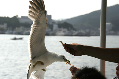 いよいよ最終回となります。(勝手にやってます) 今回は気仙沼港から船で30分ほどで到着の離島、 “大島”で撮った写真です。 ![]() ■ 気仙沼⇔大島までのお楽しみ 気仙沼港の観光桟橋(エースポート)でこの“カモメのオヤツ”を買って いざ、船に乗り込みます。 ![]() ■ 先頭の彼、 船が動くとどこからとも無く集まってくるカモメ。 船と一緒に飛行します。 ![]() ■ 狙いを定めています ![]() ■ うまく行くとこんな感じです と、大島に着くまでの間に テンションをますます高めてくれるのです。 気仙沼といえば“気仙沼ちゃん”を思い出す方が多いと思います。 その気仙沼ちゃんが営む民宿『アインスくりこ』があるのがこの大島です。 大島も今回の地震で、津波や火災で甚大な被害を受けました。 心よりお見舞いと1日でも早く緑の真珠の島が取り戻せるようお祈り申し上げます。 気仙沼ちゃんは従業員の皆様と一緒に避難できたようです。 ご無事で何よりです。 ![]() ■ 亀山リフト 大島では亀山という山の山頂までリフトで登る事が出来ます。 リフトに乗りながら登りも下りもパノラマを楽しめます。 ![]() ■ 亀山山頂からの風景 亀山の他にも海水浴場や砂を踏むとキュッキュッと鳴く十八鳴浜(クグナリハマ)、 自然を満喫しながら回るサイクリングなどなど、気仙沼を訪れた際には 是非、大島も訪れてみて下さい。 かねてから応援している『勝手に観光協会』の記念すべき第一回目の視察は 気仙沼でした。ここ大島も訪れています。 ![]() ■ おゆの大好物、ヨーグルトも容易に手に入らないね(物憂げ風のおゆ) 今思えばもっと写真撮っておけば良かった~~~ 復興して新しく生まれ変わる気仙沼も楽しみだけど 昔の面影残す街のいろんな所、 これから先もいつでも撮れると思ってたから。。。 相方のおばあちゃんの家は2階まで水に浸かりましたが 家自体は残ってるとの事です。 足元の不安や目の前の問題は山積みだけど、 前を向いて歩いていくしかないね! 友人のhanaさんは被災地に絵本を届けようとしてくれています。 支援物資の偏りや仕分けにかかる労力でそれ自体が難航している中、 やはり絵本はまだ支援物資としては送れないそうです。 絵本が必要な避難所などをご存じの方がいらっしゃいましたら hanaさんのブログをご覧になって是非ご連絡をお願い申し上げます。 |