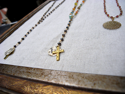 ![]() ■ 晴れてよかった~ この市では手づくりの作品を作家さん達がそれぞれのブースで出展していて 友人でアクセサリーデザイナーの宮下麻弓さんも良くこのてづくり市に 出展されています。 ![]() ■ てづくり市の終わる16時ぎりぎりまでお客さんで賑わっています 宮下さんは『horieee』というアクセサリーブランドのデザイナー。 天然石や半貴石を使用したかわいい作品がたくさんあります。 ![]() ■ ロザリオタイプのもいいな~ 私達が訪れた時は既に残りわずかになっていたアクセサリー達。 しょうがない、これだけかわいいんだから。 ![]() ■ この石は“ダルメシアンジャスパー”って言うんだって 繊細で色とりどりであったり、ひねりが利いていたり、でも嫌味がない。 彼女はとてもセンスが良く、上品でおしゃれなアクセサリーを生み出す。 ![]() ■ わ~ 迷う~~~ 彼女自身もとてもおしゃれで、この日身に着けているアクセサリーも チェックしまくりました。かわいかったな~。 ![]() ■ 石の配置もさすがです 宮下さんはアクセサリー作りのワークショップも開かれる予定だそうなので ヘタの横好きでアクセサリーを作っている私も参加させて頂こうと思います。 ![]() ■ 狭い間に好んで入る 先日は福生ライブに来て下さり、アクセサリーの事やファッションの事など 共通点も多くて、話に花が咲きました。 その節はありがとうございました。おかげで楽しい一夜になりました。 horieee のアクセサリーとBossa Novaのコラボ。。。 何か一緒に出来ないものかと妄想は膨らむのでありました。 |