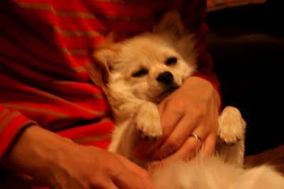 眠たくって私達にむかって吠えてくるのです。 ![]() ■ 怒られた後、かわいがられてるおゆ 眠くって(たぶん)鳴くなんて、 人間の小さな子供と一緒ですね。 ![]() ■ すねながらもうっとり いつも注目されていたいんだね、おゆ。 |