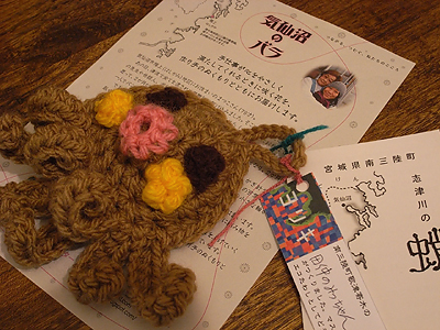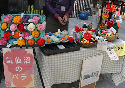 この日はほぼ毎月開催されている手作り市『あかぎマルシェ』の日。 境内はさまざまな作家さんのブースとお客様、そしてお参りされる方々で 賑わっていました。 ![]() ■ 巫女さん発見 4月というのに風が冷たくて、冬が戻ってきたみたい! 寒い!! ![]() ■ ライブさせて頂いた場所は ![]() ■ 蛍雪天神さまの横!(お礼参りしなくては。。。) 寒い中、足を止めてお聴きいただきました皆さま、ありがとうございました。 出店されていた皆さま、お疲れ様でした! ![]() ■ “気仙沼のバラ”インパクト大!(RQ被災地女性支援センターのブース) ![]() ■ “志津川の蛸”のエコたわし(田仲のみっちゃん作)をチョイス 気仙沼出身の相方は吸い寄せられる様にあるブースへ。 数あるブースの中で目を引いた「気仙沼のバラ」の文字。 ここに並ぶ“バラ”や“蛸”“マンボウ”のアクリルで編まれたたわしは 東日本大震災で被災された宮城県内の仮設住宅や津波被災地にお住まいの 女性の方々が集まって作られた商品です。 1点、1点に作り手のお名前が書かれてるので、 その方に向けてメッセージを送ることもできます。 私も“田仲のみっちゃん”さんにメッセージを送る予定です。 【RQ被災地女性支援センター】 (HP)http://rqwomen.net/ (ブログ)http://rqwomen.blogspot.jp/ ![]() ■ 顔と体が合成みたい(最近、手足がムキムキしてきました) 気仙沼のバラ、全国に広がればいいな~ しっかし今日も寒い! |