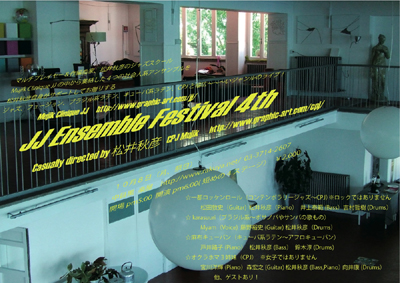 マルチプレイヤー&編曲家、松井秋彦プロデュースの社会人系4組のアンサンブルが 出演。ジャズ、フュージョン、ブラジル系ラテン、キューバ系ラテン、CPJと幅広い ジャンルのライブ! ![]() ■ JJ Ensemble Festival 4th ~presented by Akihiko Matsui (Latin、Fusion、Bossanova、CPJ) 2012年10月8日(月祝) 開場17:00 開演18:00 m.c. ¥2,000 <ACCESS> @ 中目黒・楽屋(らくや) 東京都目黒区上目黒2-15-6 東急東横線・日比谷線『中目黒駅』より徒歩5分 <ご予約> Tel/Fax 03-3714-2607 <出演アーティスト> ・一都ロッケンロール 松田充史(Guitar) 松井秋彦(Piano) 井上泰範(Bass) 吉村哲樹(Drums) ・karasuuri myam(vo) 藤野裕史(Guitar) 松井秋彦(Drums) ・麻布キューバン 戸井路子(Piano) 松井秋彦(Bass) 鈴木淳(Drums) ・オクラホマ3姉妹 森宏之(Guitar) 宮川洋輝(Piano) 松井秋彦(Bass) 向井康(Drums) 他 他、ゲストあり! ![]() ■ たまにキチンとおすわりできます お時間がございましたら、是非お越し下さい! |
