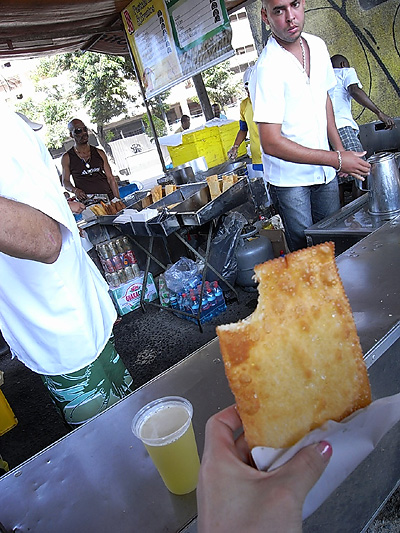 まずはホテル周辺を散策。 ![]() ■ ホベルト・メネスカルの元実家『 Galeria Menescal』 下層階にはショッピングセンターがある ![]() ■ 『Galeria Menescal』のテナント。ヘレナ・ボナム・カーター! ![]() ■ 『Galeria Menescal』のテナント。中古屋さんにて。。。人形の中古は少し怖い。 サンパウロと違って、リオは日本人がめずらしいらしく、自分が浮いていると実感。 安全、と言われるショッピングセンターの中でもおどおどしてしまった初日。。 ![]() ■ 街のアクセサリー屋さん ![]() ■ ココナッツのジュースは街で良く見かける ![]() ■ 最近日本でも話題のアサイーのジェラード(手前は実はジュース) アサイーの味は日本で“アサイーmix”とか“アサイージュース”とかいう比較的 食し易いものではなく『ガッツリアサイー』でした(汗 好き嫌いが分かれる植物かな~。。。養命酒のような味(?)、健康に良さそうな味(?) ![]() ■ かわいい着こなしの女の人 ![]() ■ 中古本・CD屋さん(ガムテープアートであの人が!) 夜はとにかく時差ボケのせいと、興奮でなかなか寝付けない。 少ししたら起きて、また少し寝てすぐ起きてを繰り返し、 旅行中はずっと、目覚まし時計が鳴る前に起きてしまいました。 ![]() ■ ホテルの窓から見た朝焼け ![]() ■ 朝食の会場からはコパカバーナの海岸が良く見える 2日目は早くから支度して、タクシーで朝市へ。 ![]() ■ セントロのフェイラ(朝市)にて ![]() ■ 様々な物が売っていて、中古のパーツとか ![]() ■ 古本とか ![]() ■ かつて誰かが大切にしていた人形とか。。。 ![]() ■ かなり長い距離、フェイラのテントがひしめき合っていて、 全部は回れなかった~ ![]() ■ パステル(揚げパイ)とサトウキビのジュースが飲める屋台 ![]() ■ Pastel de queijo e Suco de cana(今回の旅行で一番美味しかった食べ物) もっともっとこの朝市に居たかったけど、次のミッションに移るべく 後ろ髪引かれながらフェイラを後に。 またまたゆっくり更新していきま~す。 ![]() ■ おゆばさみ |