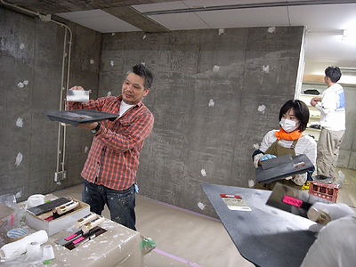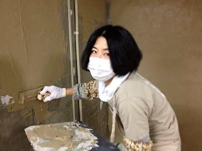 その漆喰は【シリカライム】という100%自然素材の漆喰で、なんとお部屋の臭いや有害物質を吸着、分解してくれるという優れもの。 ![]() ■ おしゃれなパッケージに入ったシリカライムの素(?) ![]() ■ 塗布する為に水を足して練り練り ![]() ■ 職人さんによる左官作業のレクチャーを受けて ![]() ■ 各人いっせいにスタート ![]() ■ 左手が疲れる~ 壁に漆喰を塗る作業なんて初めて。ペンキ塗りすらしたことない。 職人さんをみているとス~っと簡単そうに塗るから、”じゃ私も”ってやったところで此れ上手くいくはずもなく。 コツがつかめそうでなかなかつかめない。 そうしているうちに、もう腕や肩が凝り固まっていく。。。 ![]() ■ お昼休みは美味しいハヤシライスとサラスパ(ごちそうさまでした!) 前のコンクリート打ちっぱなしの壁も素敵だったけど、シリカライムを塗った後、空気が透き通ったように感じた。 次はもっと上手く塗れるようになりたいな。 家の壁にも塗りたい! 【フラットハウス】 ※トップページの写真はシリカライム塗布後 http://www.flat-h.com/index.html 【SILICALIME(シリカライム)】 http://silicalime.co.jp/ 後から全体を職人さんが手直ししてくれたので一安心。 とても良い経験と思い出が出来た。 ![]() ■ 今日のおまけ ~特技:人に甘えること ・・・・・・・手帖後記・・・・・・・ ![]() ■ 『関山』の柚子いなり 当日、おやつに戴いた“いなり”があまりにも美味しかったので、 次の日にお店の場所を調べて買いに行った『関山』の柚子いなり。 柚子の香りとたぶん刻んだ漬物?の様なもののコリコリとした食感がたまらなく、 いくらでも腹に入りそうなさわやかなお味。 |