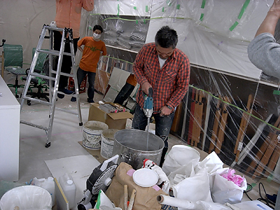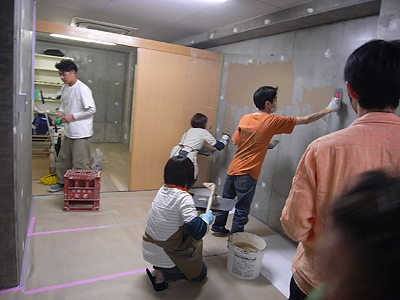 ご縁があって六本木は西麻布交差点のすぐ近く、多目的空間『フラットハウス』の壁を漆喰で塗る、という貴重な機会に参加させて頂く事になった。