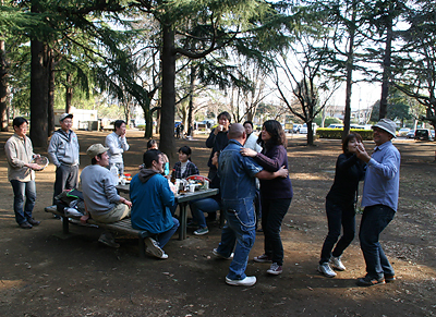 ある晴れた3月の日、調布の野川公園でシュハスコ(ブラジリアンBBQ)をした。