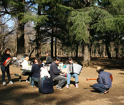 日中、上着なしでも歩けるような暖かな日だったな。 ![]() ■ 調布飛行場が近い 今回ブラジルに帰ってしまうポルトガル語講座の先生の壮行会を兼ねての開催。 ![]() ■ 焼いてます ![]() ■ 焼いてます ![]() ■ 香草類を岩塩を溶かした水に浸しながら、肉に降りかけているブラジレイラ。 家でもぜひ真似したい技。 <食後> ![]() ■ あちら ![]() ■ こちらで 楽器を持って来てる人も多く、セッションが自然発生。 普通のバーベキューではアコーディオンにお目にかかれないんじゃないかな。 おいしい食べ物とお酒と音楽がある、そーなるとこれがブラジルではあたりまえ↓ ![]() ■ 日本だけど、ここはブラジル流儀に則りペアダンス開始 ブラジルに行った時に、生演奏のライブがあってお酒が飲めるお店では、座ってる人の方が少ないと言って良い程の盛り上がりでみんな楽しそうにダンスを踊っていた。 それがむこうでは普通の事らしい。 日本人には到底馴染みのある習慣に成りえないだろう。 私もその一人。。 ピシテリ先生、エリゼッチさん、 ブラジルでもお元気で!! ![]() ■ いつもお留守番ごめんね。前足そろってるよ。 |