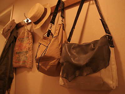 革や古着のベルト、デッドストック生地を使ってBAGを作った。