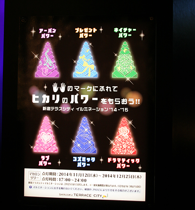 やっぱり1年は速い。 毎年記事にあげているイルミネーションのネタ。 今年も新宿サザンテラスのイルミネーションに行ってきました。 (と、言うか通っただけ。。) ![]() ■ すこ~しも寒くないわ♪ おゆのいつものお散歩は相方が連れてってくれます。 でもたまに私も一緒に3人(正しくは2人と一匹)で外に出かけると、おゆは人間の子供と同じようにいつもより張り切った足取りでとても嬉しそう。そう見えるのは気のせいでしょうか? ![]() ■ まる~い実の様なライトがロマンチックに木々を彩る この辺一帯のイルミネーションを【新宿ミナミルミ】と言って、ミナミルミ”とは「南のイルミネーション」「みんなで観るイルミネーション」という意味らしい。 ![]() ■ これが「マカロンツリー」って名前って事はあの丸いライトはマカロンってこと? その中でも目を引くのがサザンテラス広場に設置された、手を触れると6種の光と音が変化する「マカロンツリー」。 ![]() ■ なかなかキレイなものです クリスマス近くになると、この場所にカップルで行列が出来たりする。 (ちなみに一昨年の様子) ![]() ■ この中だったらコズミックパワーが欲しいな まだ一度も試したことがないので、今年こそはやってみよ。。 こーゆー事への好奇心は大切だと思う。 (言うは易し) ![]() ■ 今年のJR東日本本社ビル前 ↑こちらも毎年テーマが変わるJR東日本本社ビル前のイルミネーション。今年は来春開業する北陸新幹線をテーマに、加賀友禅らしき着物を纏ったSuicaのペンギン達。着物”ってより、民族衣装の様にも見えるな~ ![]() ■ 金沢駅の発車メロディーは中田ヤスタカ氏作 今日、北陸新幹線5駅の発車メロディが発表されたようです。 http://www.nikkei.com/article/DGXLASJB09H0Y_Z01C14A2I00000/ |