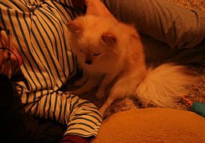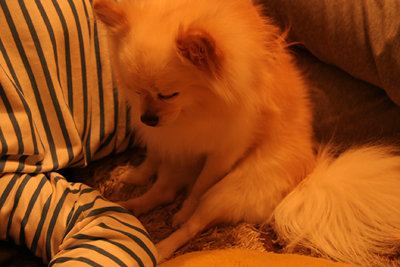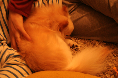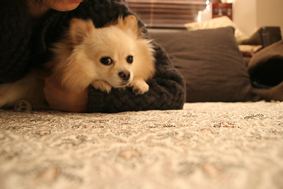 大き目のチワワの体にポメラニアンの毛が生えたうちの犬。