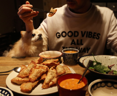 ■ オレと揚げ餃子 ブラジル料理にパステルという大きな揚げ餃子の様なホットスナックがあります。 生地はいわゆる揚げ餃子の皮とは異なり、パイ生地のようなサクサクとした食感です。 中身はチーズや挽肉、あと干し鱈を入れたものなんかがポピュラーです。 うちでは普通の餃子の皮で作っています。 揚げ物、いつまで好きでいられるかな。。 ****************************************************** 来週末はモーニングライブです。 ぜひお待ちしております! 【 2017.4.2.sun 】 渋谷・モンキーフォレスト-Monkey Forest- ライブ |