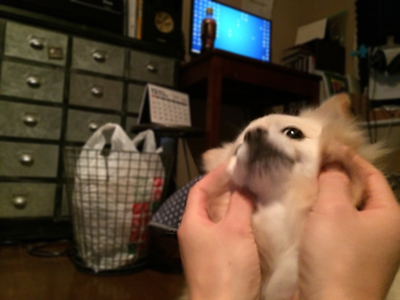 ほっぺをウニウニすると 抵抗します |
